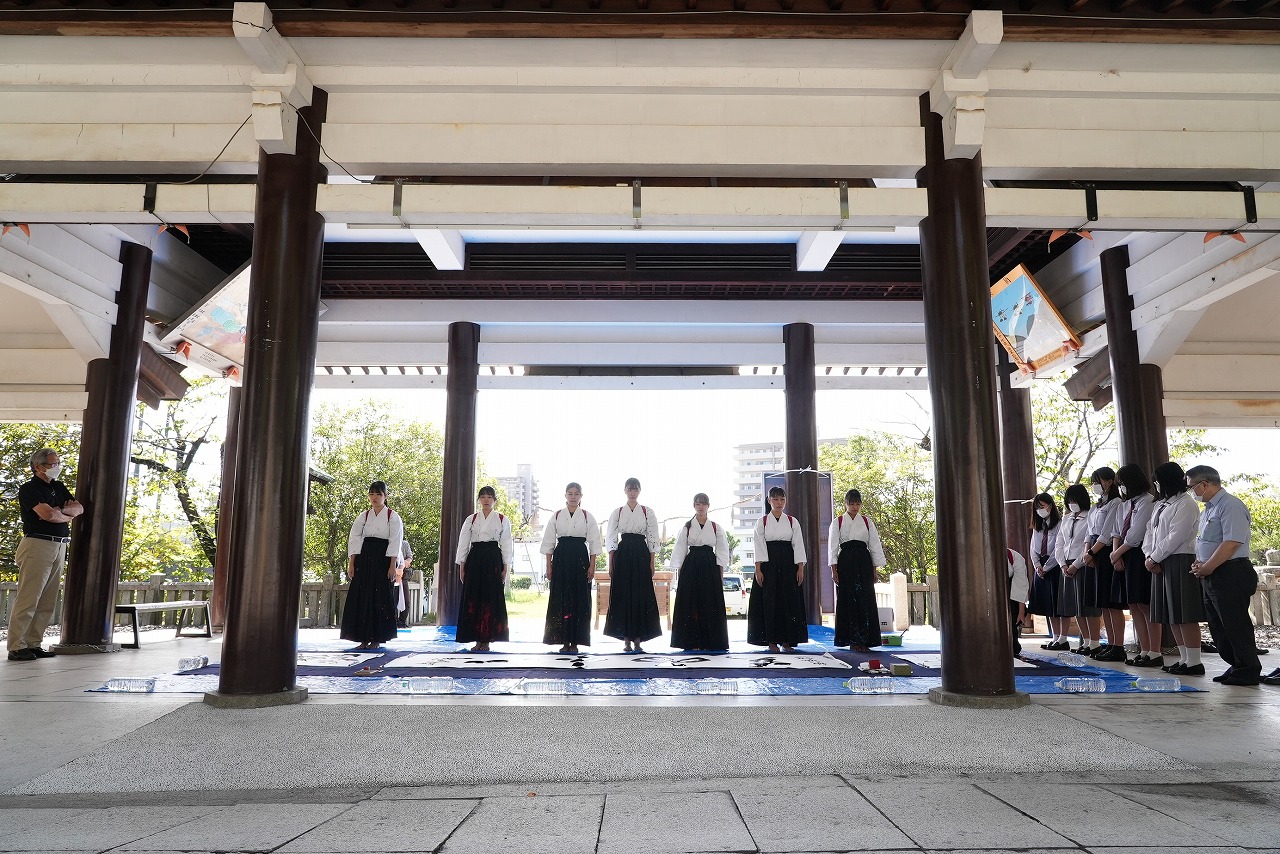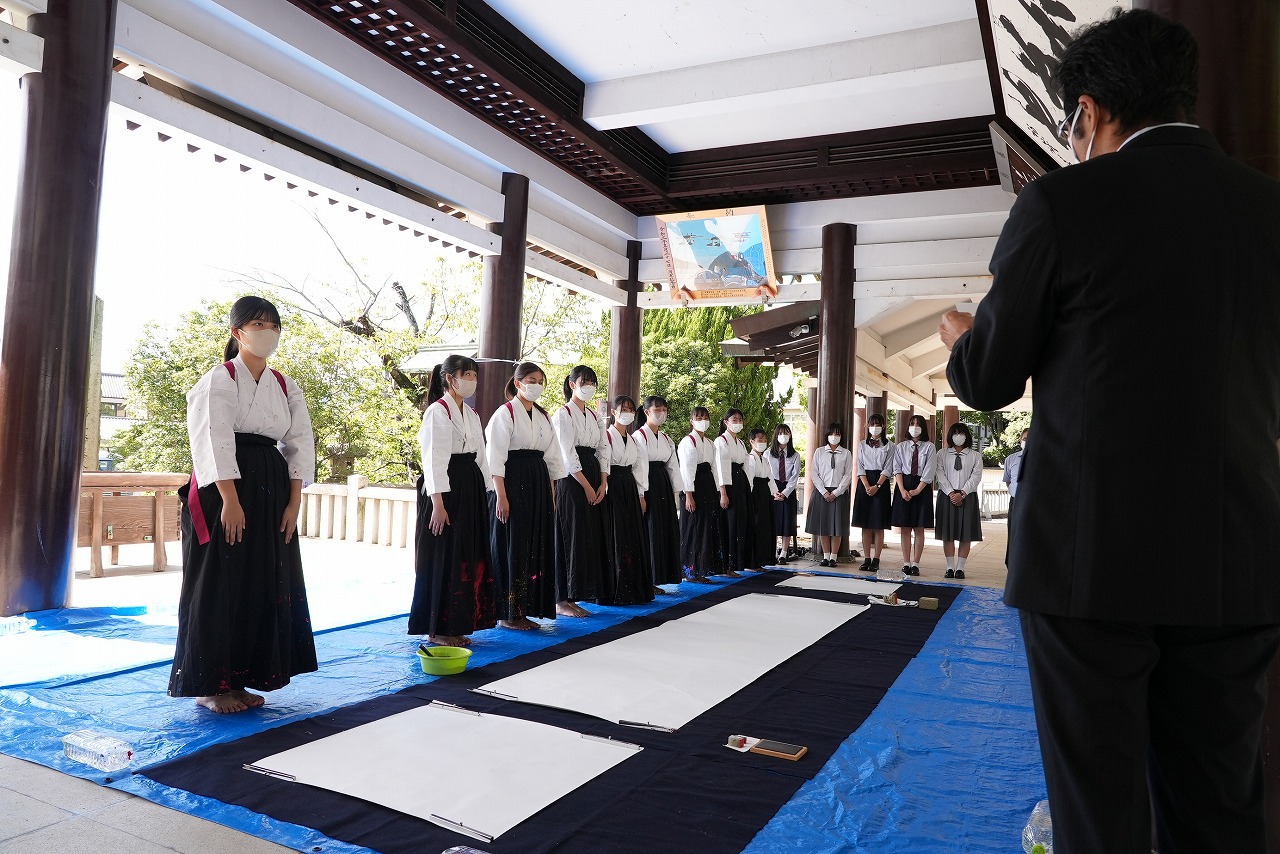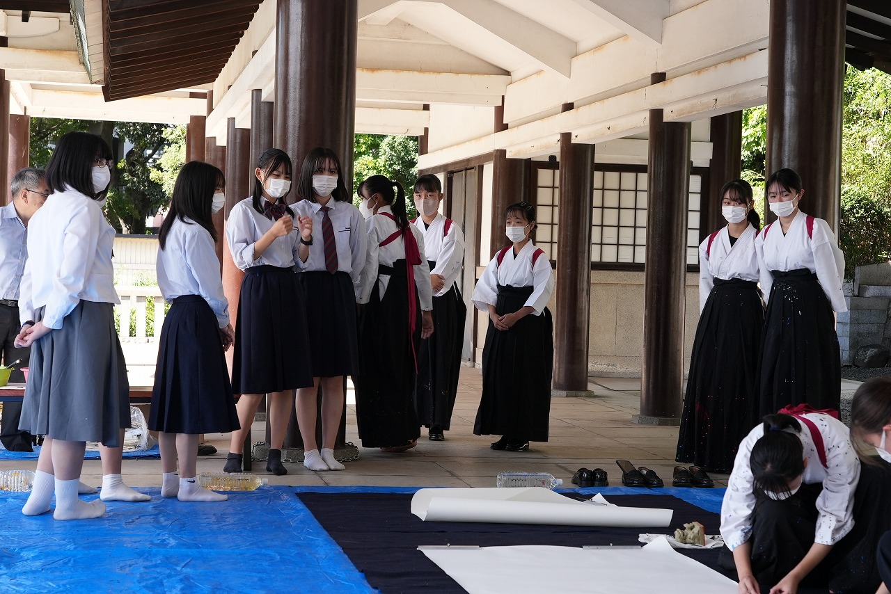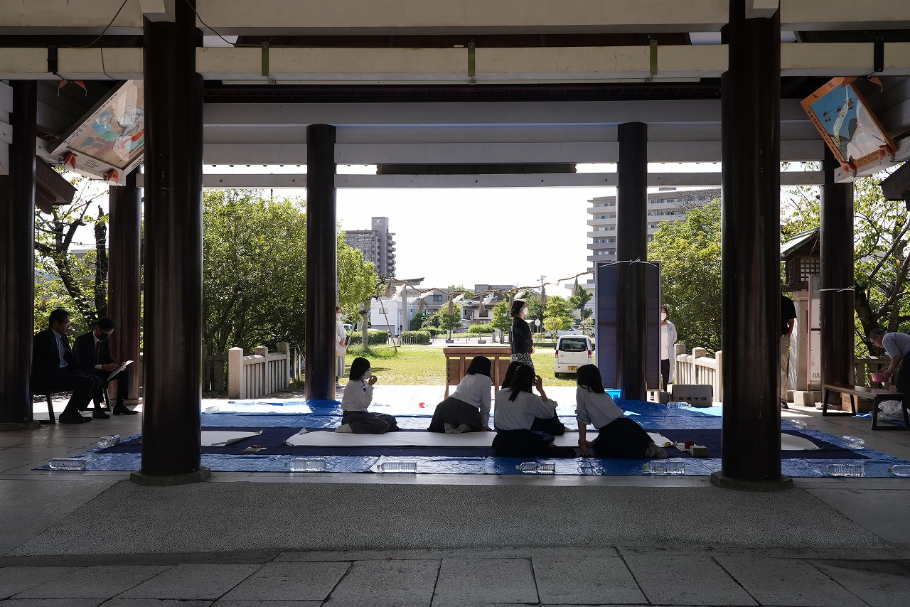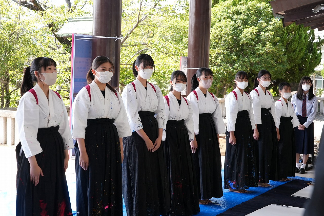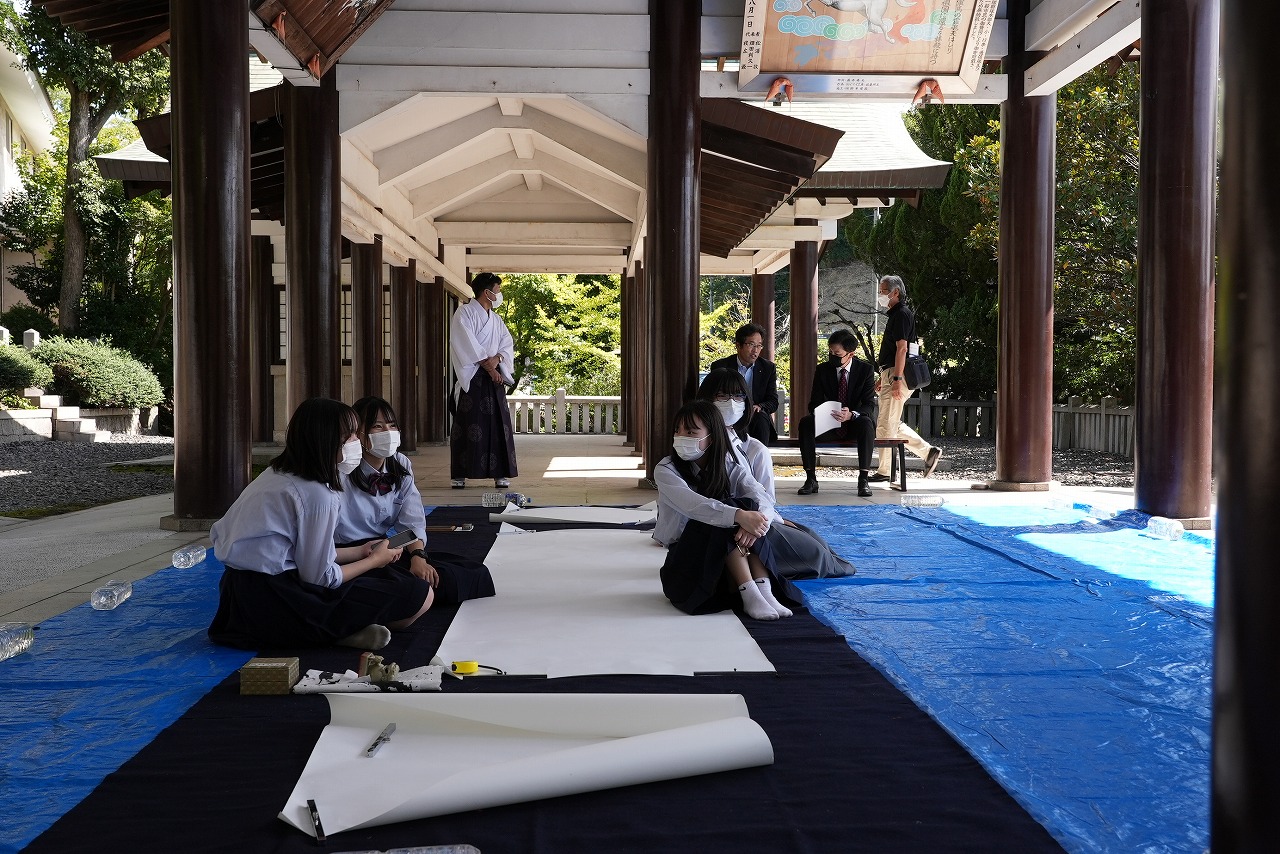 毎年9月21日に開催される高校生による揮毫が本社下拝殿にて行われました。