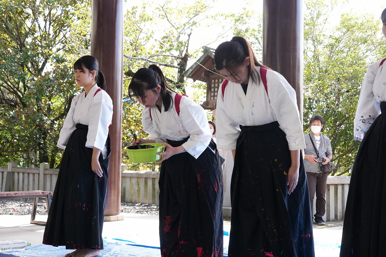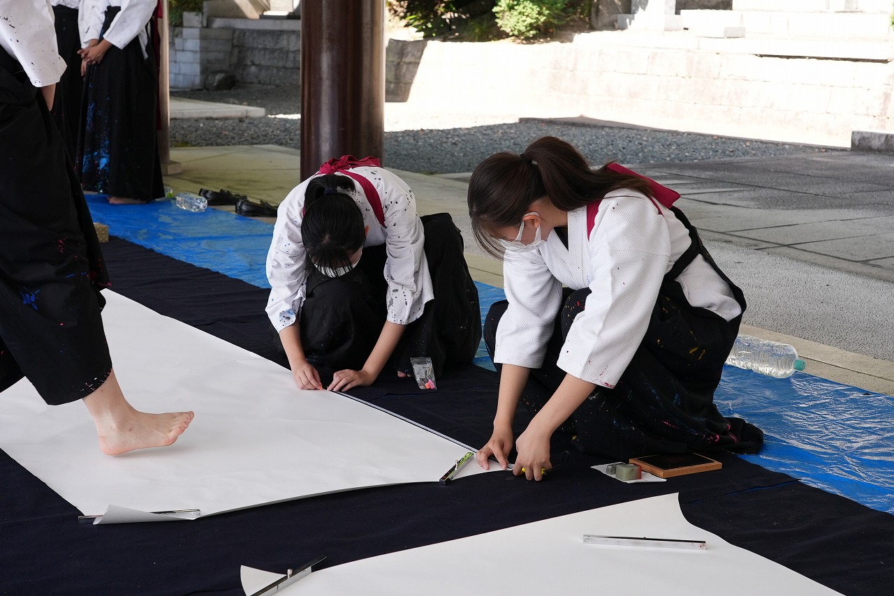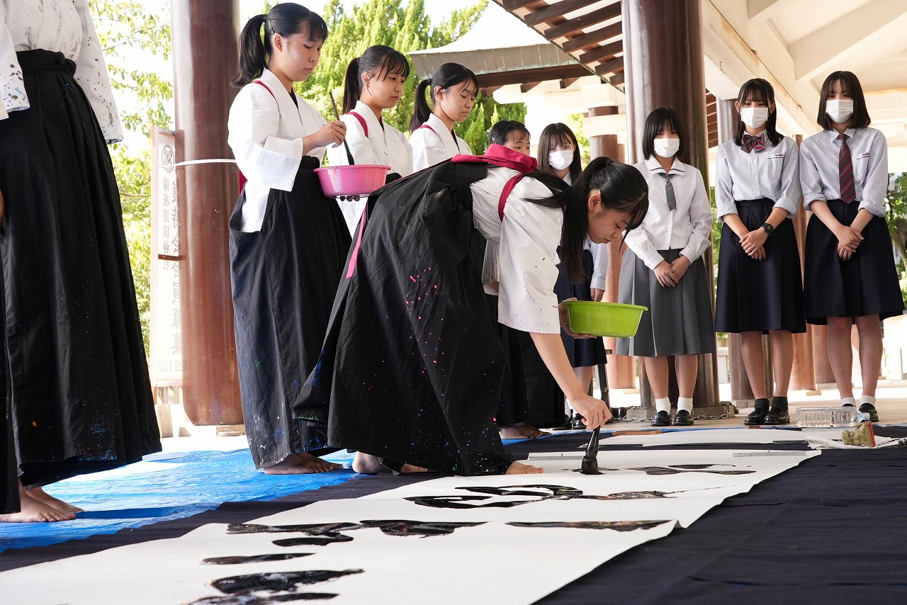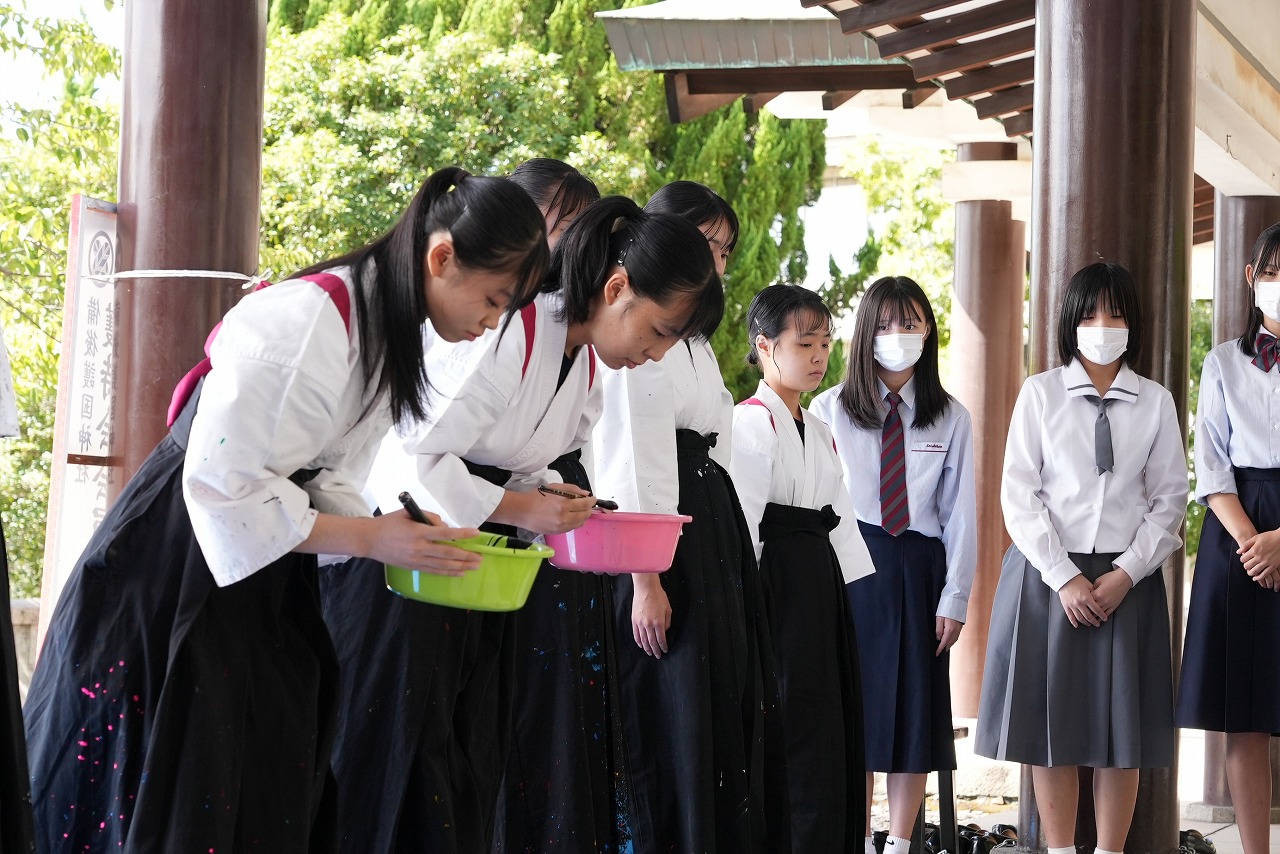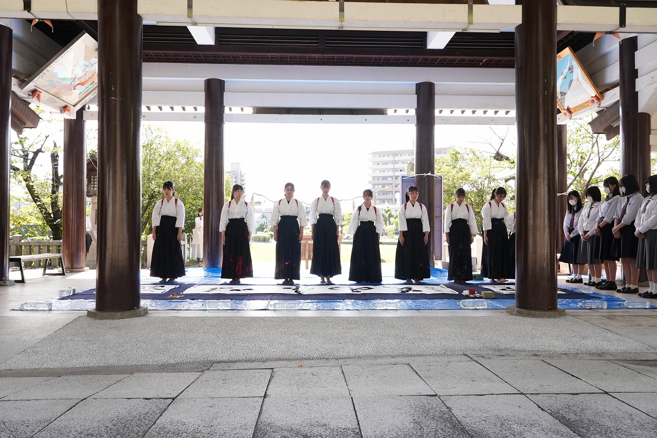 毎年9月21日に開催される高校生による揮毫が本社下拝殿にて行われました。