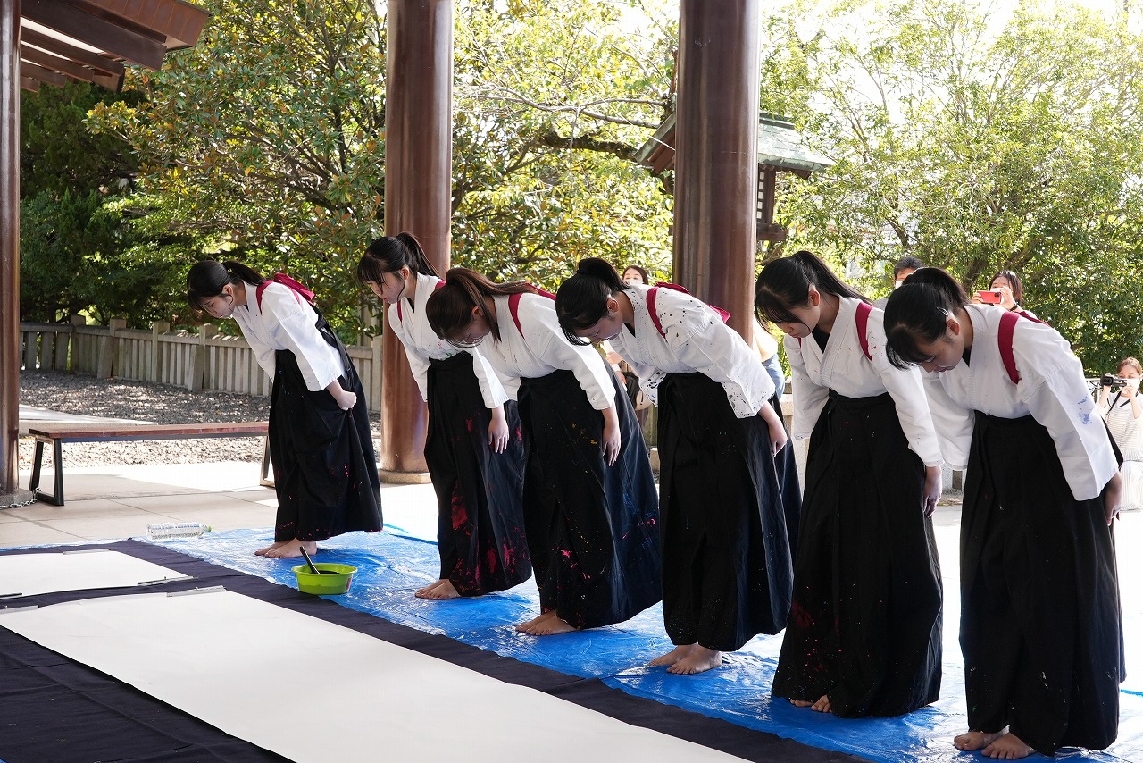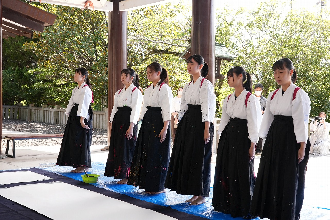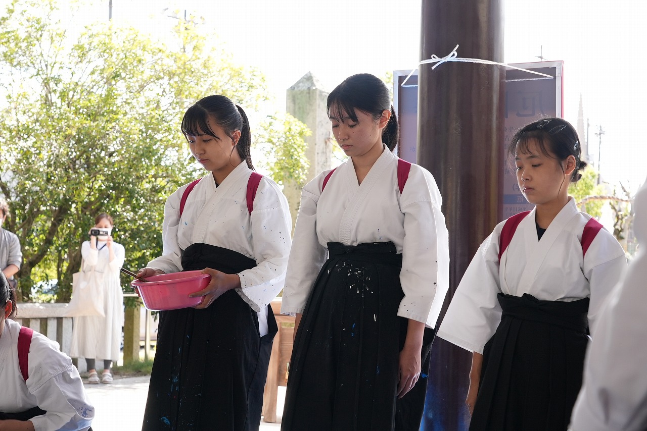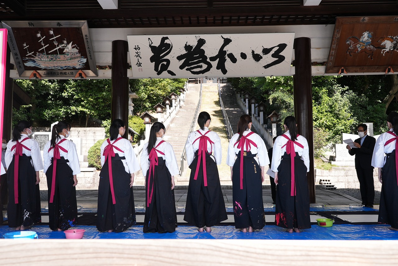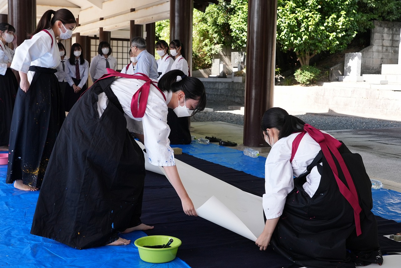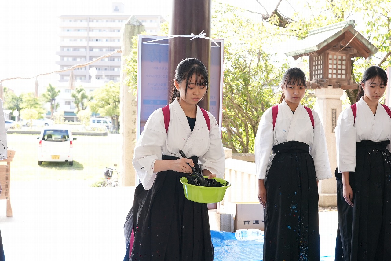 毎年9月21日に開催される高校生による揮毫が本社下拝殿にて行われました。