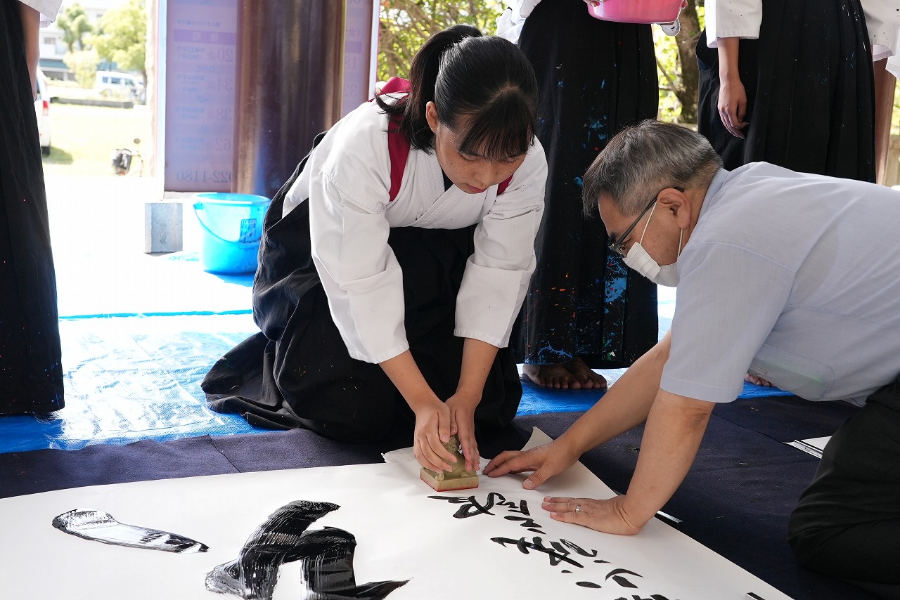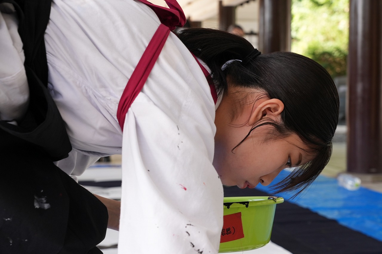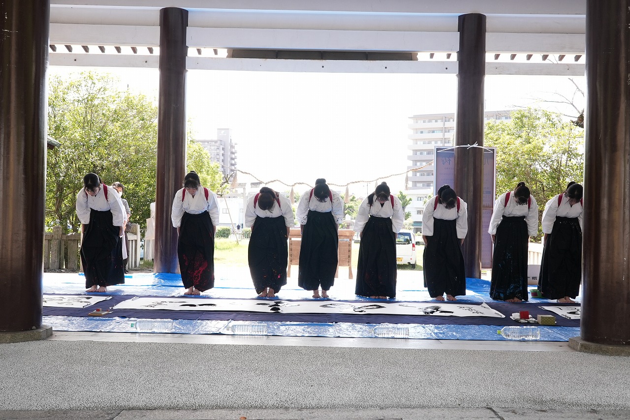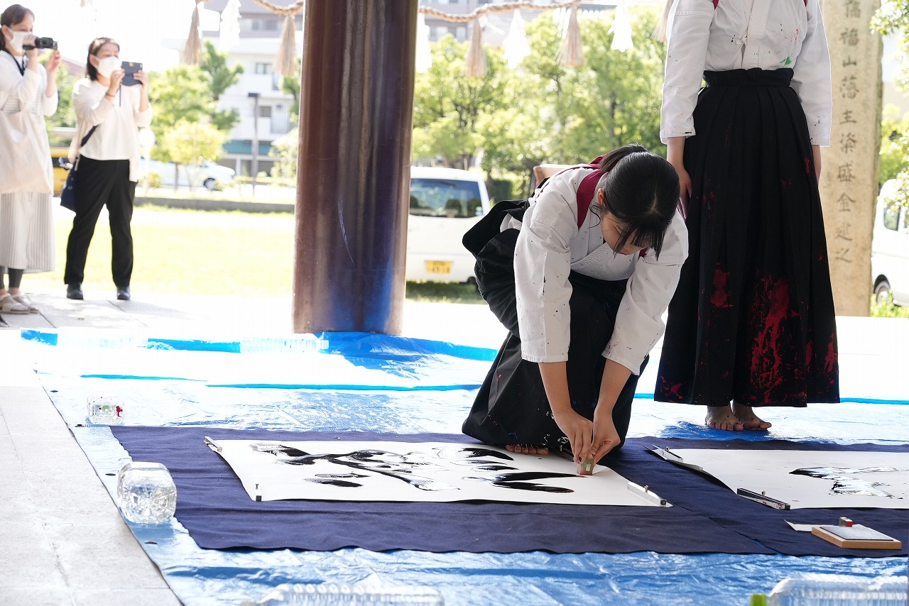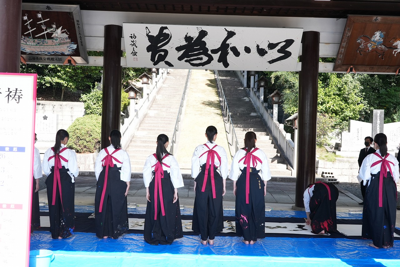 毎年9月21日に開催される高校生による揮毫が本社下拝殿にて行われました。