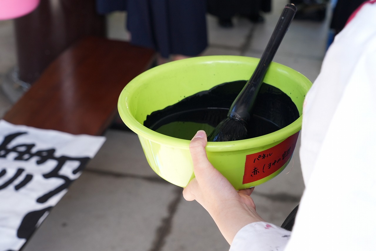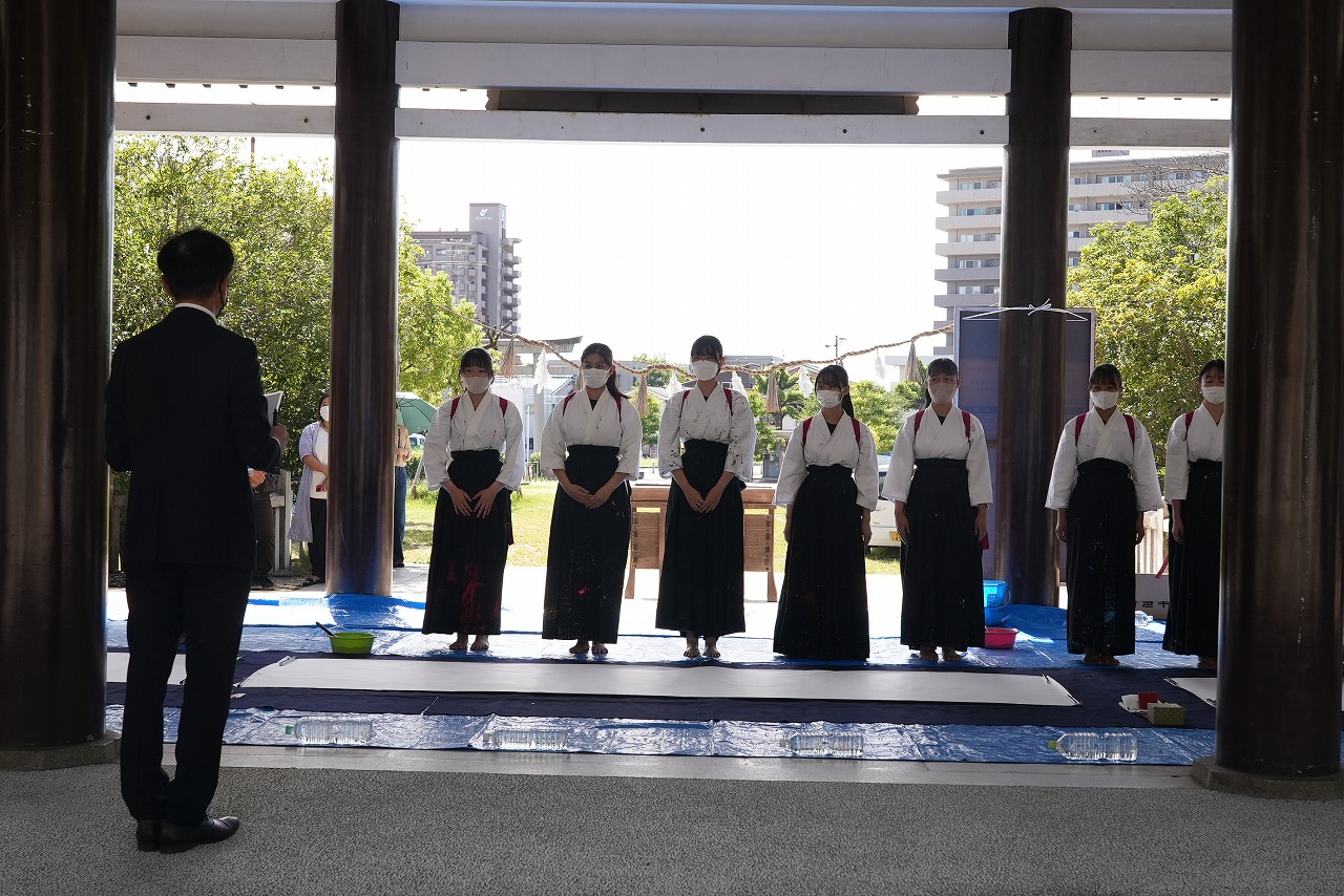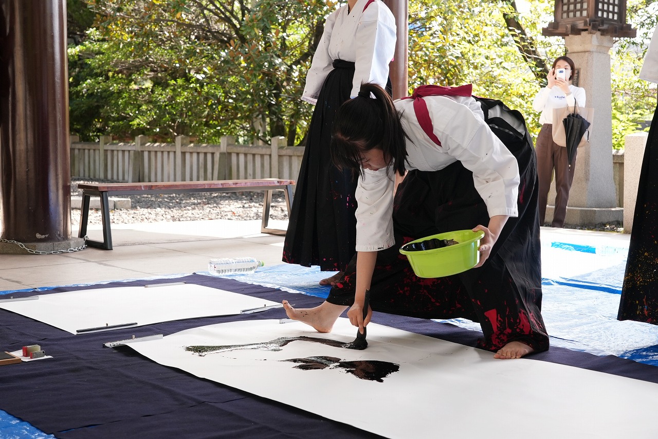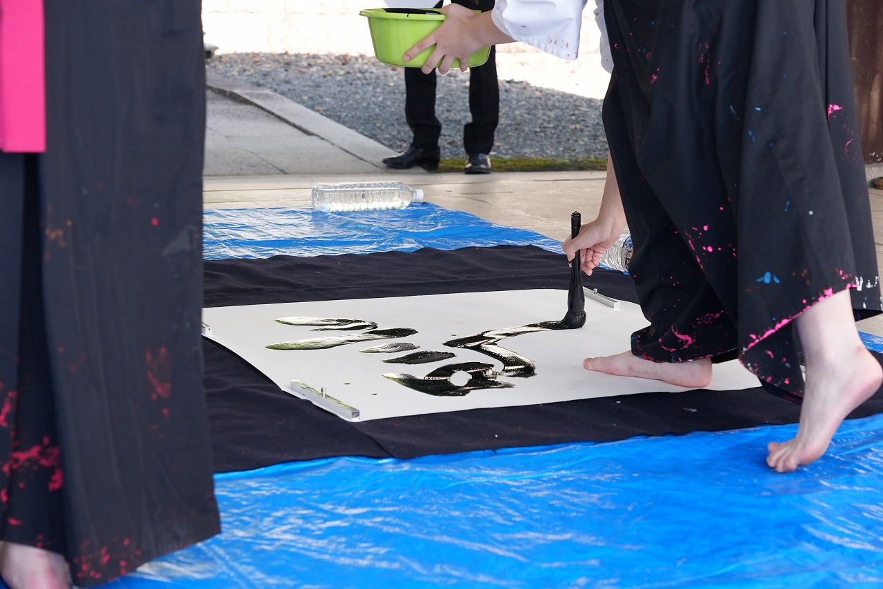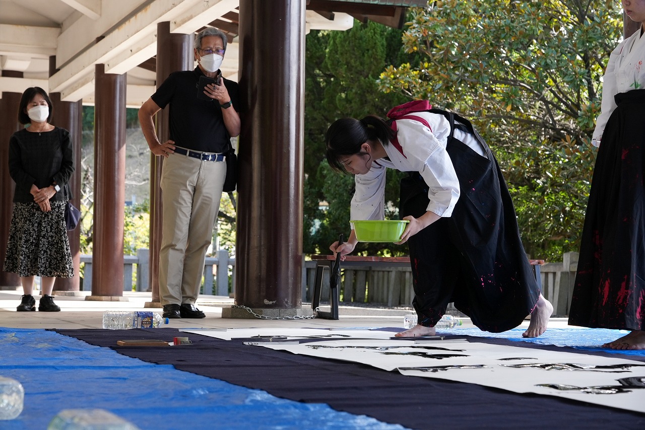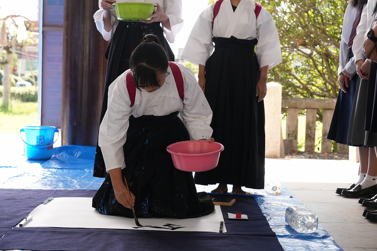 毎年9月21日に開催される高校生による揮毫が本社下拝殿にて行われました。