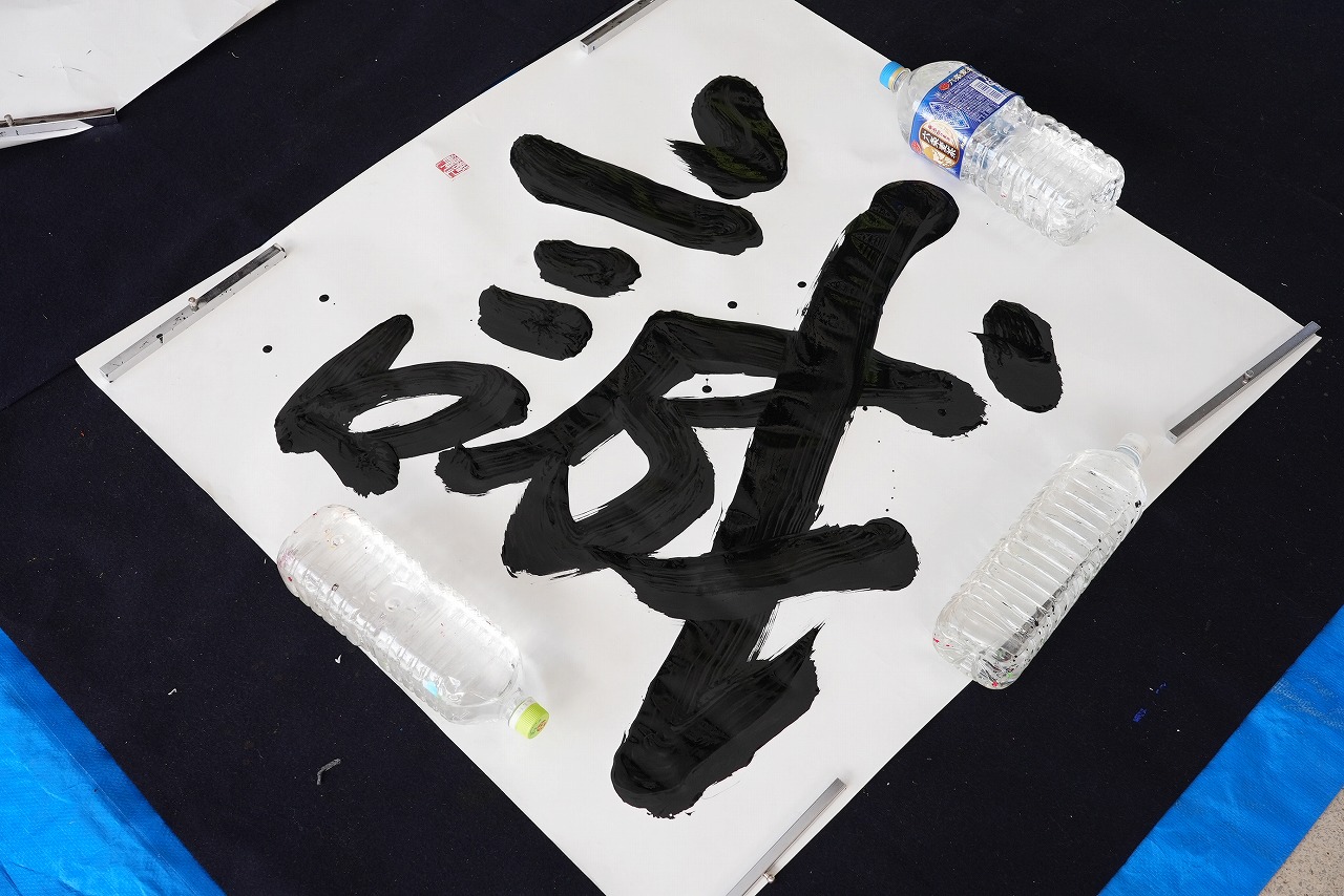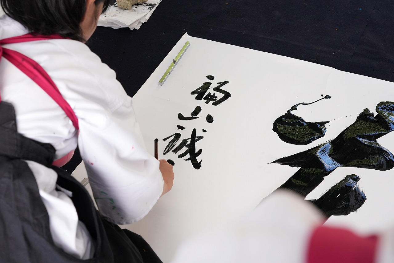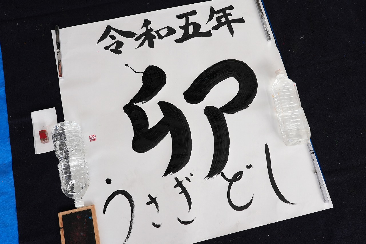 今年も誠之館高校書道部の皆さんによる【和を以て貴しとなす】【誠】来年の干支である【卯】の